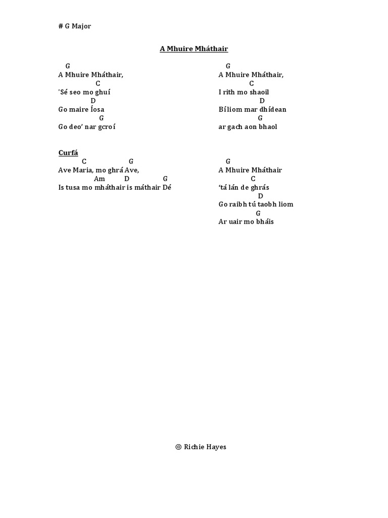 A Mhuire Mhathair Lyrics And Chords