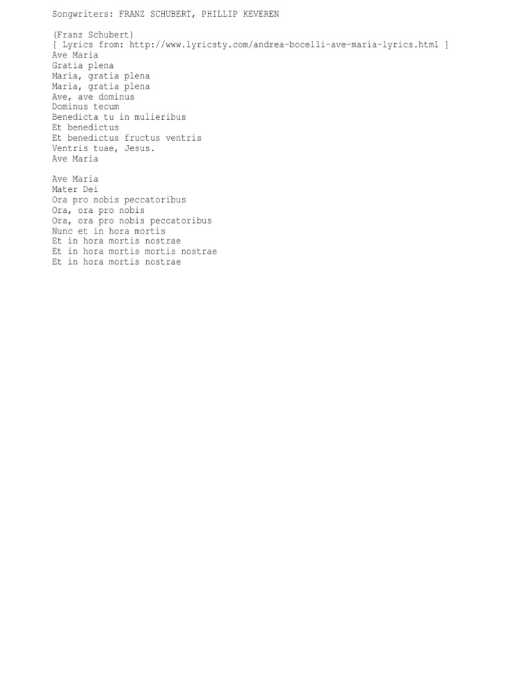 Song Lyrics Of Ave Maria Health Tips Music Cars And Recipe